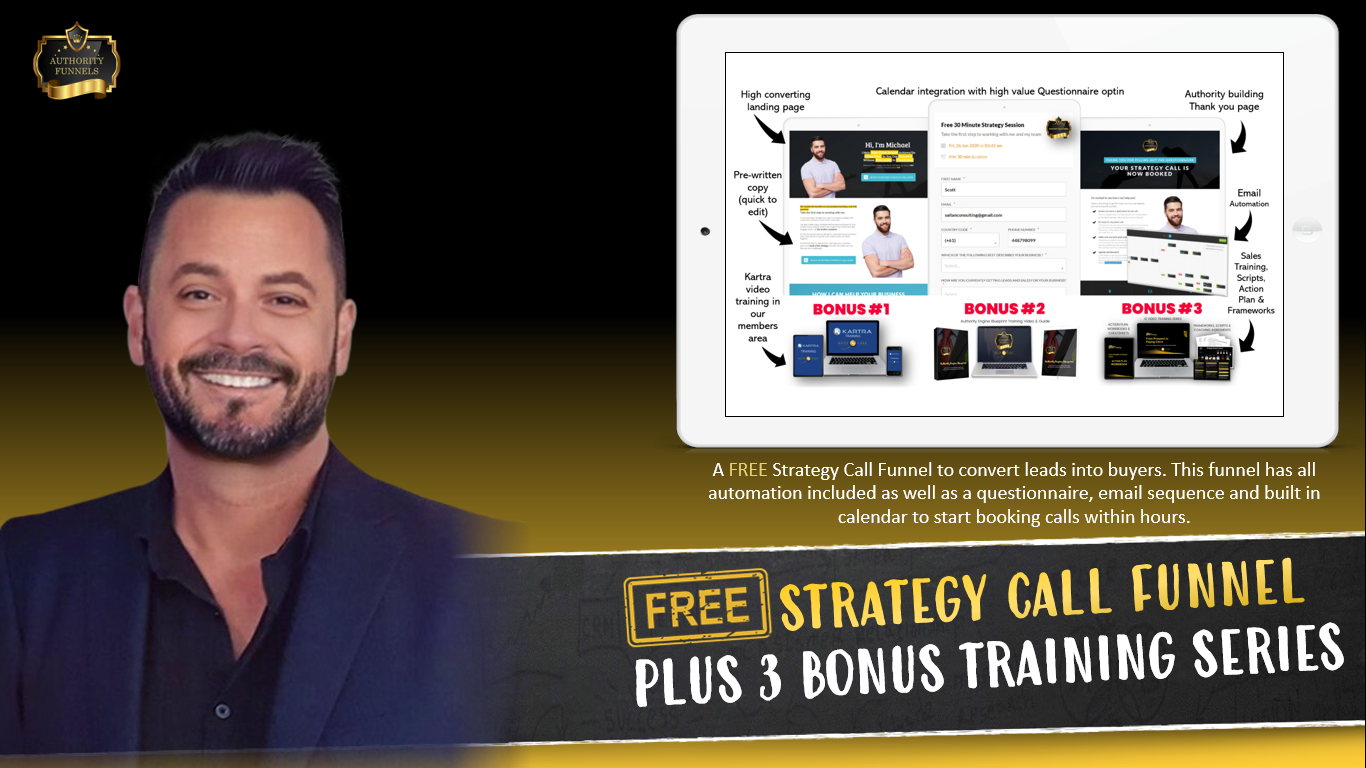 A FREE Strategy Call Funnel to convert leads into buyers.This funnel has all automation included and a built in calendar to start booking calls within hours.