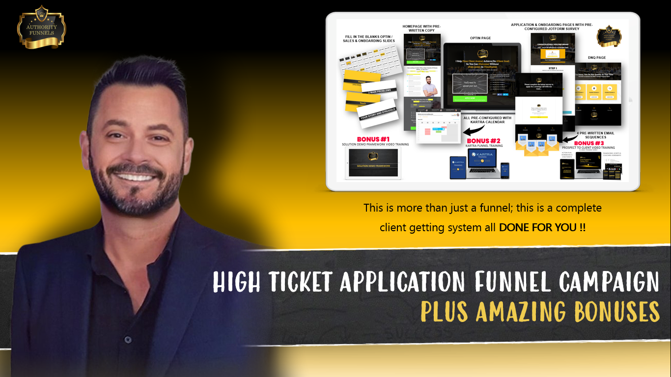 A HIGH TICKET APPLICATION FUNNEL with all automation included along with pre-written email sequences, questionnaires and on-boarding sequence